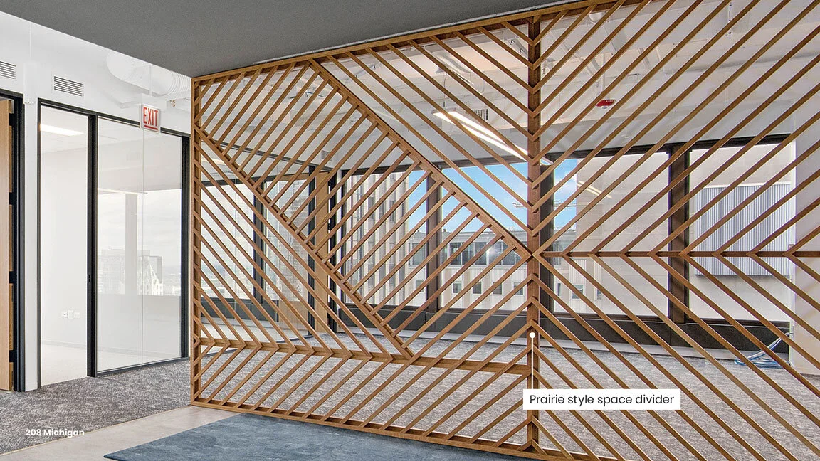 Brochure design for Equity Residential, detailing branded environmental elements along an office tour path.